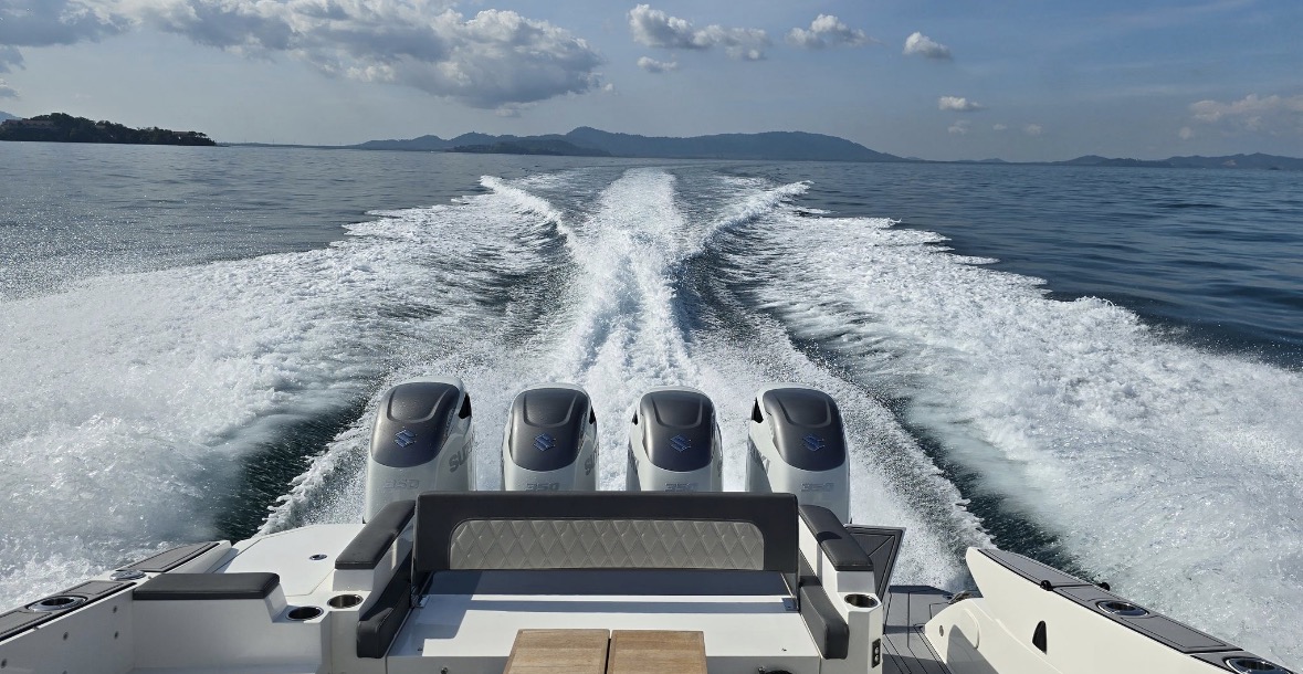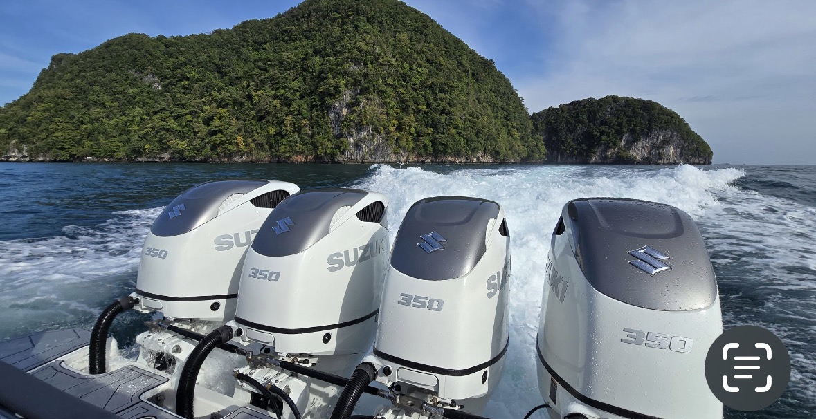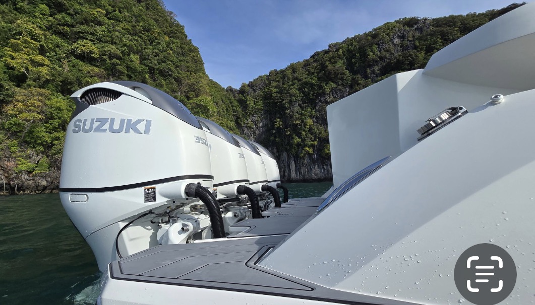 Powered by 4 outboard 4 st engines SUZUKI DF 350 new generation (total 1400 hp) and only 185 hours use.