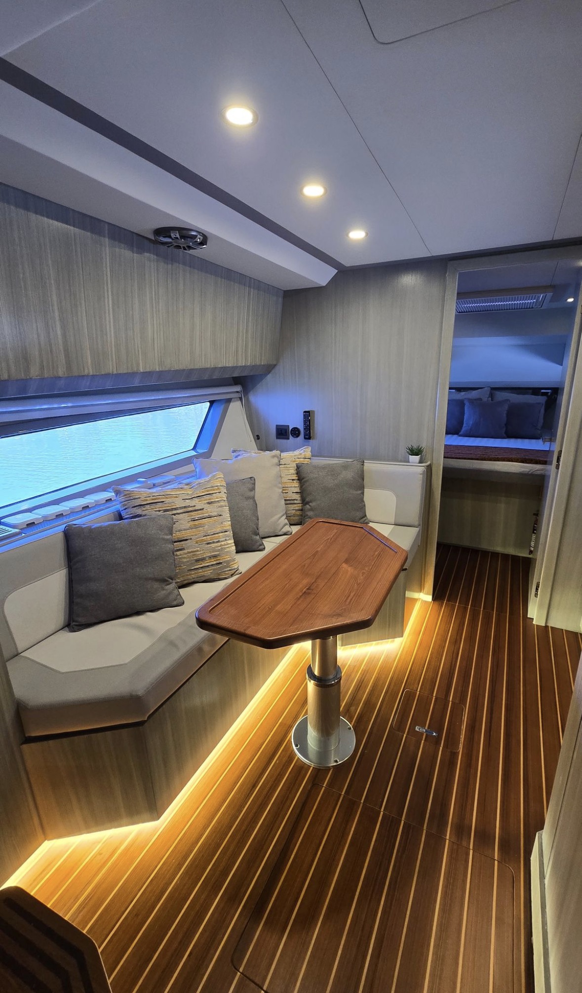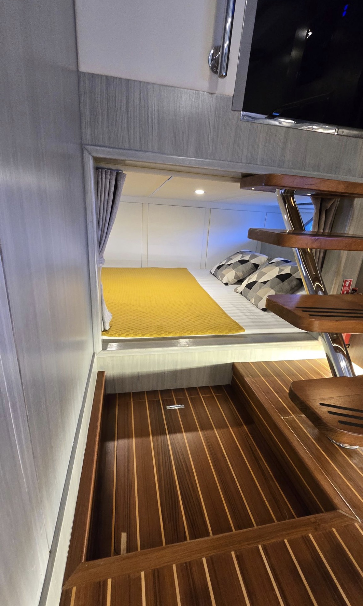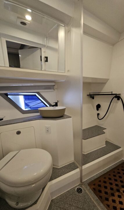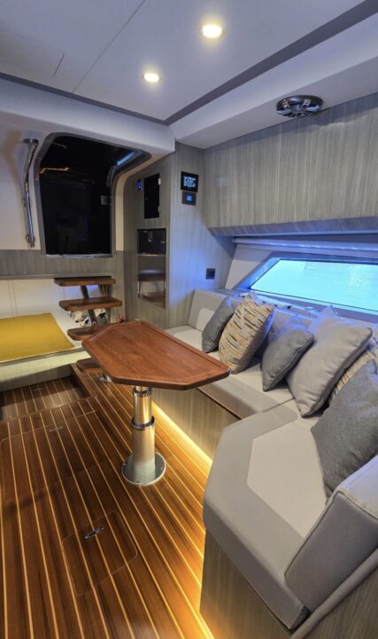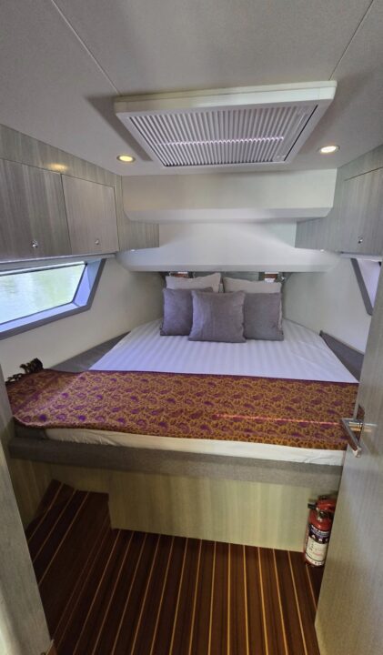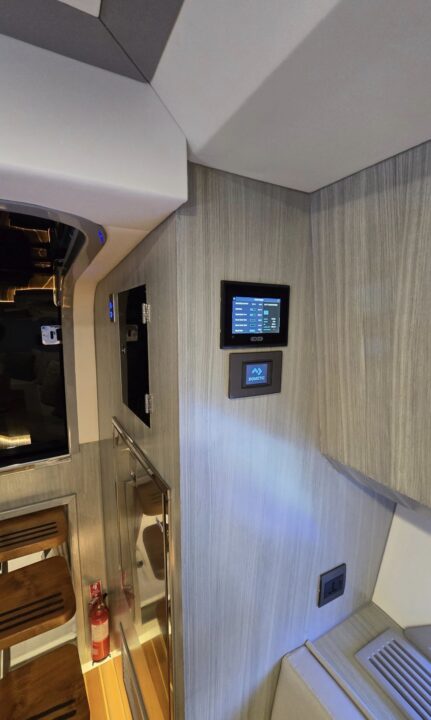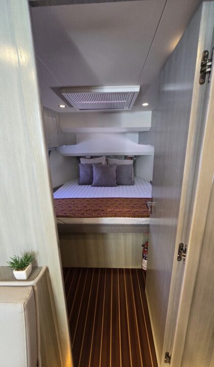 Well equipped: Shore power, solar panel 300 W , inverter, 3 lithium batteries,Radar, 2 GARMIN GPS 19 inch, Garmin autopilot, VHF, AIS, bow thruster, 3 monitoring cameras, Wet bar, ice maker, BBQ,fridge, ceramic cook top, oven/microwave, TV, FUSION stereo bluetooth with 8 speakers + subwoofer, search lights, underwater lights, external lights( colour changing), hardtop, retractable bimini, storage covers in navy Sunbrella, aft deck and bow deck cover, trim tabs and many extras… MUST BE SEE.