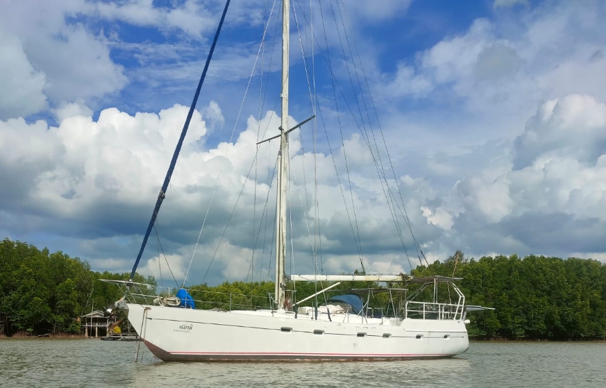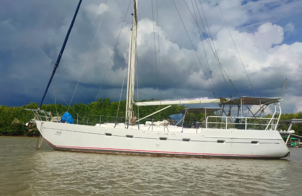 For sale in KRABI this nice steel sailing boat BRUCE ROBERTS 53 built in UK year 1998 and well maintained by owner who lives on board but due to his advanced age, he can no longer sail.