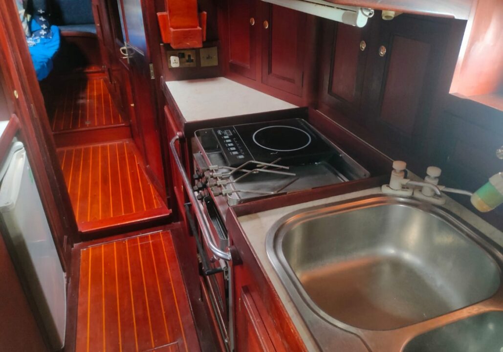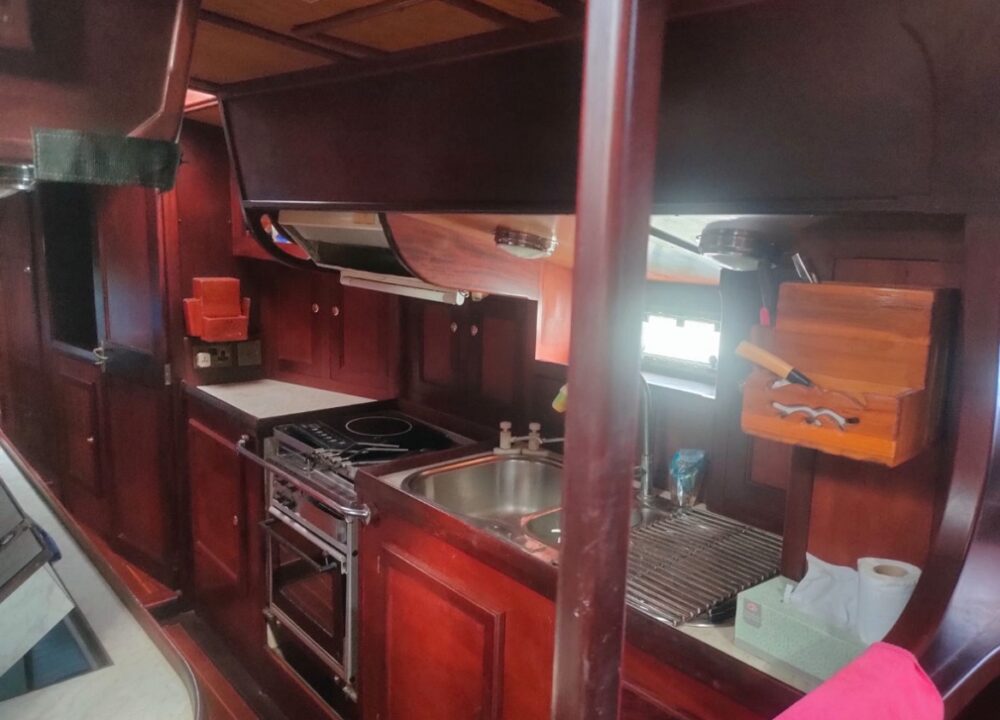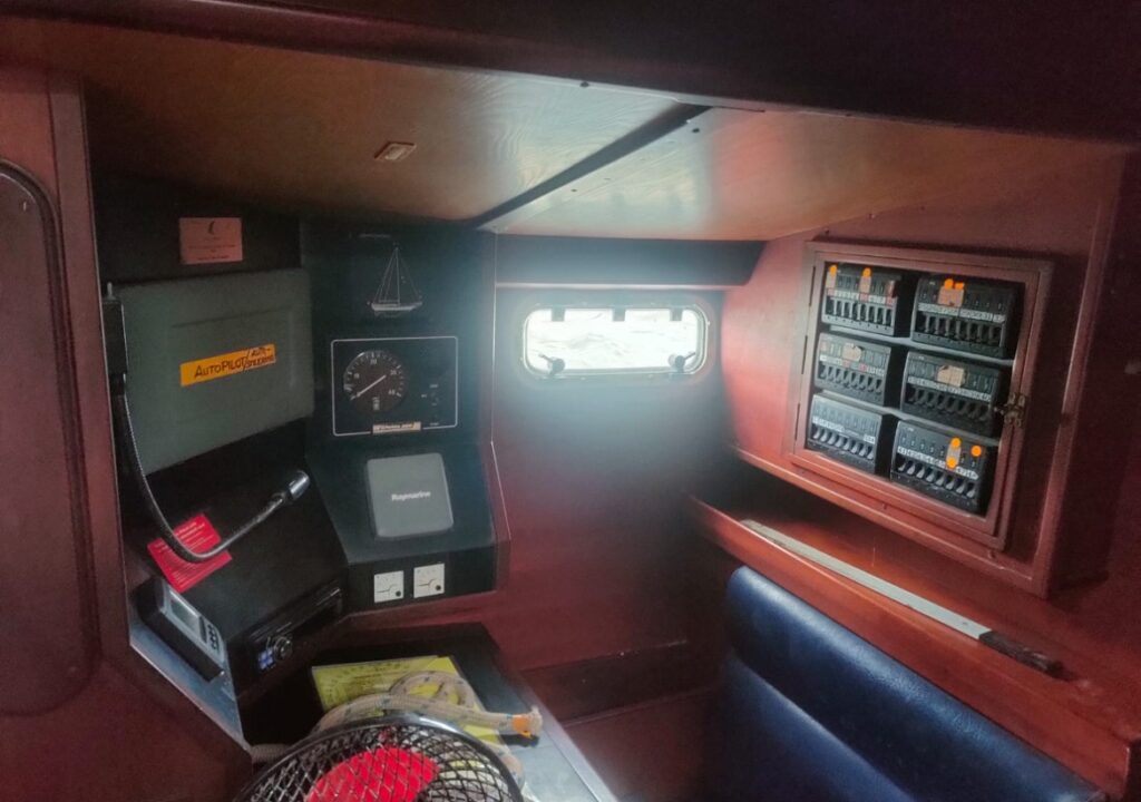 Well equipped: Shore power, solar panel, 10 batteries, GPS, VHF, speed log= wind, autopilot, compass, stove, oven, fridge, freezer, 3 burners,propane, davits, dinghy and many extras.
