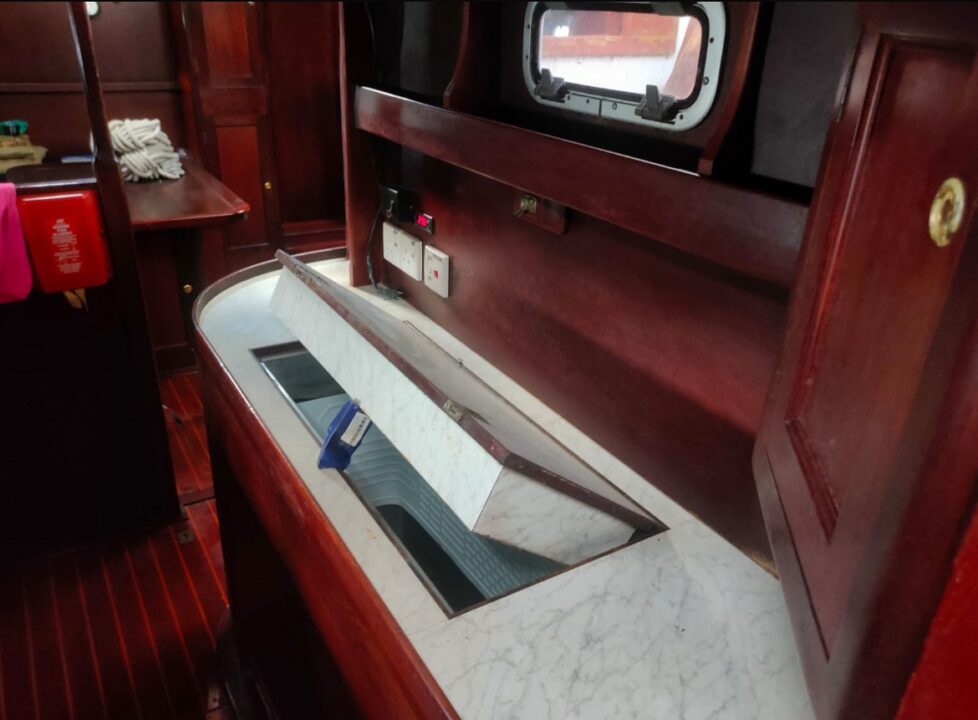 Built of low corrosion corten steel, , fin profile, nice MAHAGONI interior.