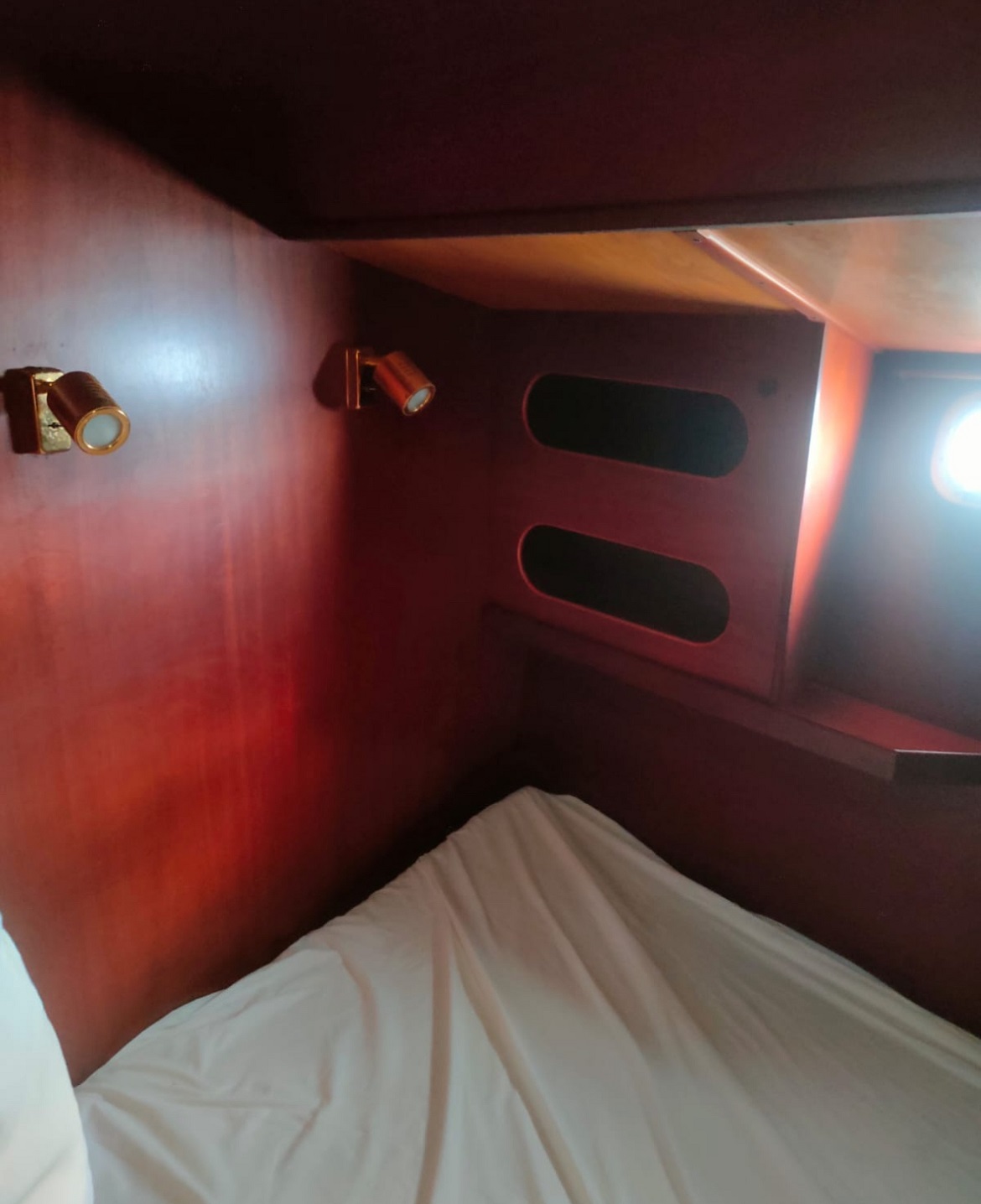 Built of low corrosion corten steel, , fin profile, nice MAHAGONI interior.