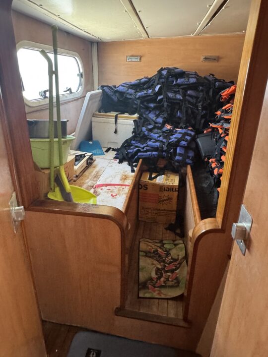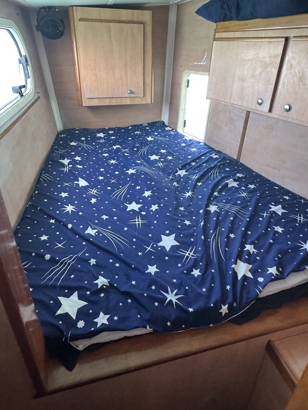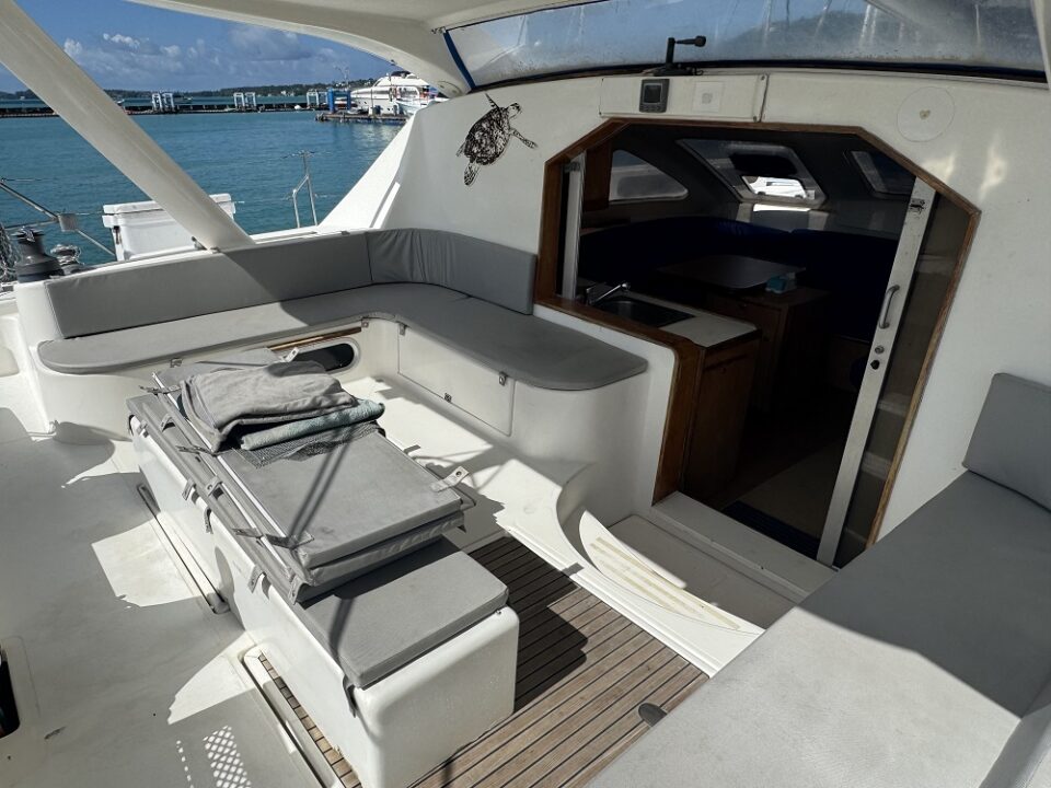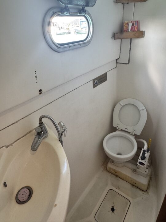 4 Cabins, 3 bathrooms, galey, saloon, large space outside.