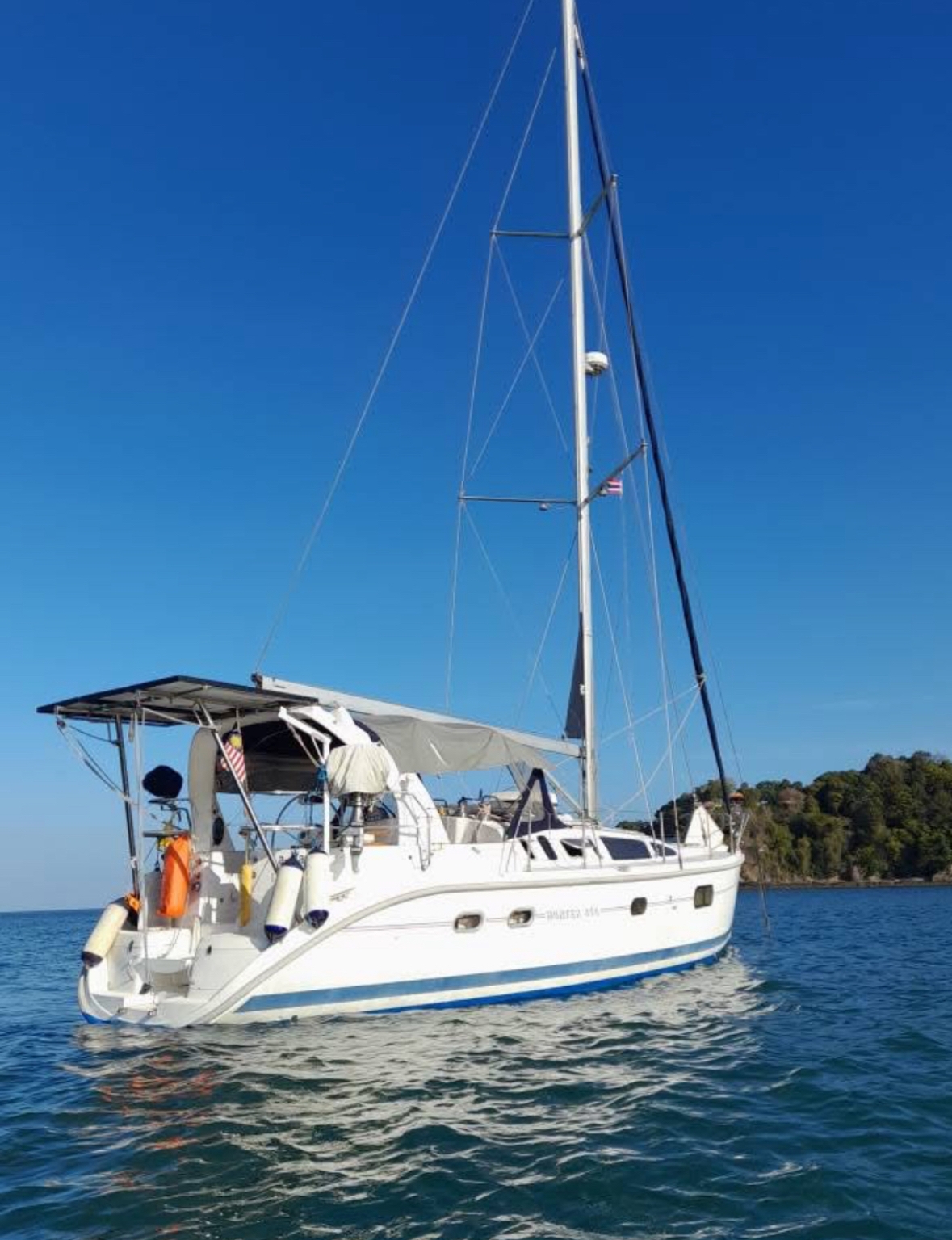 In good condition and private use this fiber sailing boat built in USA year 1999 is now for sale in KRABI ( THAILAND).