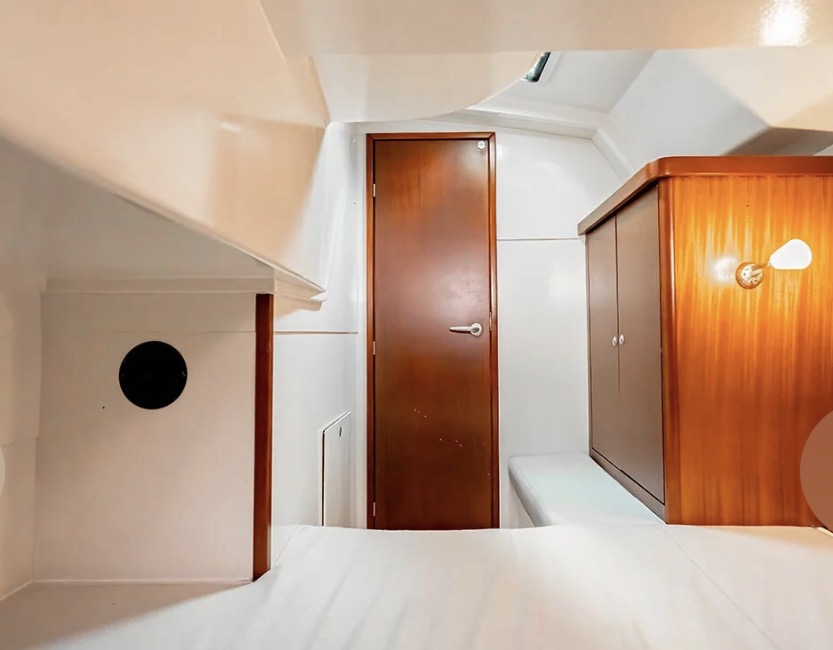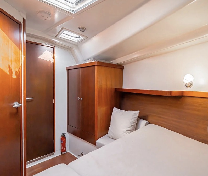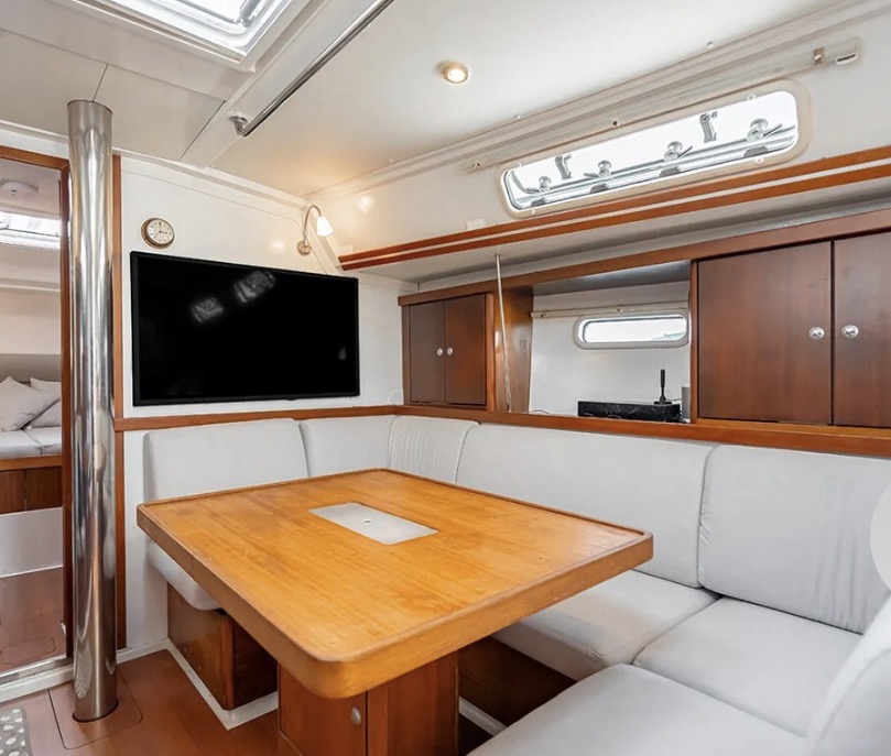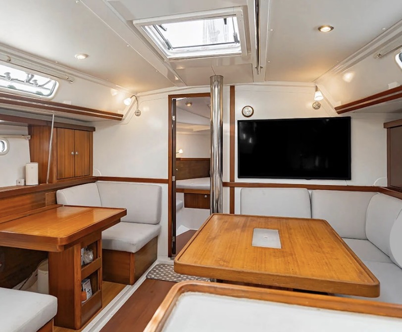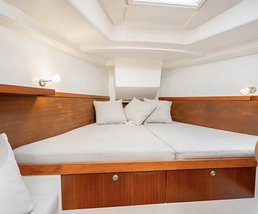 Well equipped: RAYMARINE Electronics instruments, Radar, GPS, VHF, AIS, autopilot, windspeed, solar panel 1.6 KW, inverter, fridge, freezer, gas, water maker, hot water, sound system with 7 speakers, WOFI 5 G, underwater lights, bimini, platform, dinghy 2.7 meter + 2.5 hp engine SUZUKI 4 stroke and many extras.