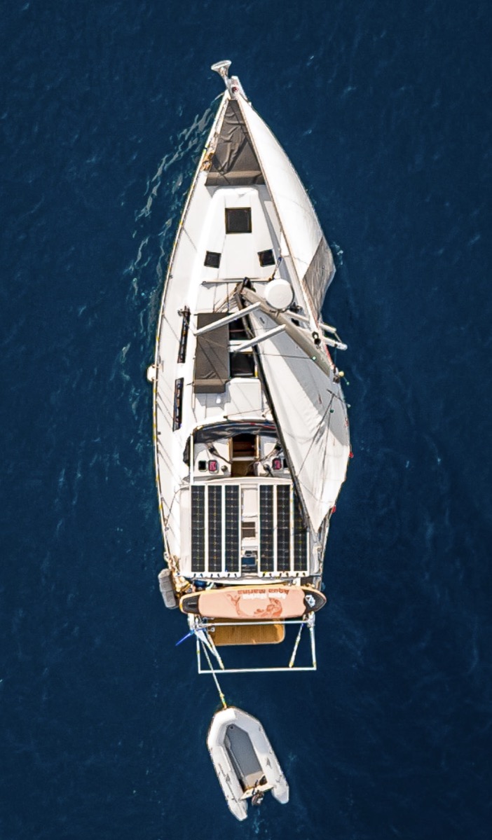 Well equipped: RAYMARINE Electronics instruments, Radar, GPS, VHF, AIS, autopilot, windspeed, solar panel 1.6 KW, inverter, fridge, freezer, gas, water maker, hot water, sound system with 7 speakers, WOFI 5 G, underwater lights, bimini, platform, dinghy 2.7 meter + 2.5 hp engine SUZUKI 4 stroke and many extras.