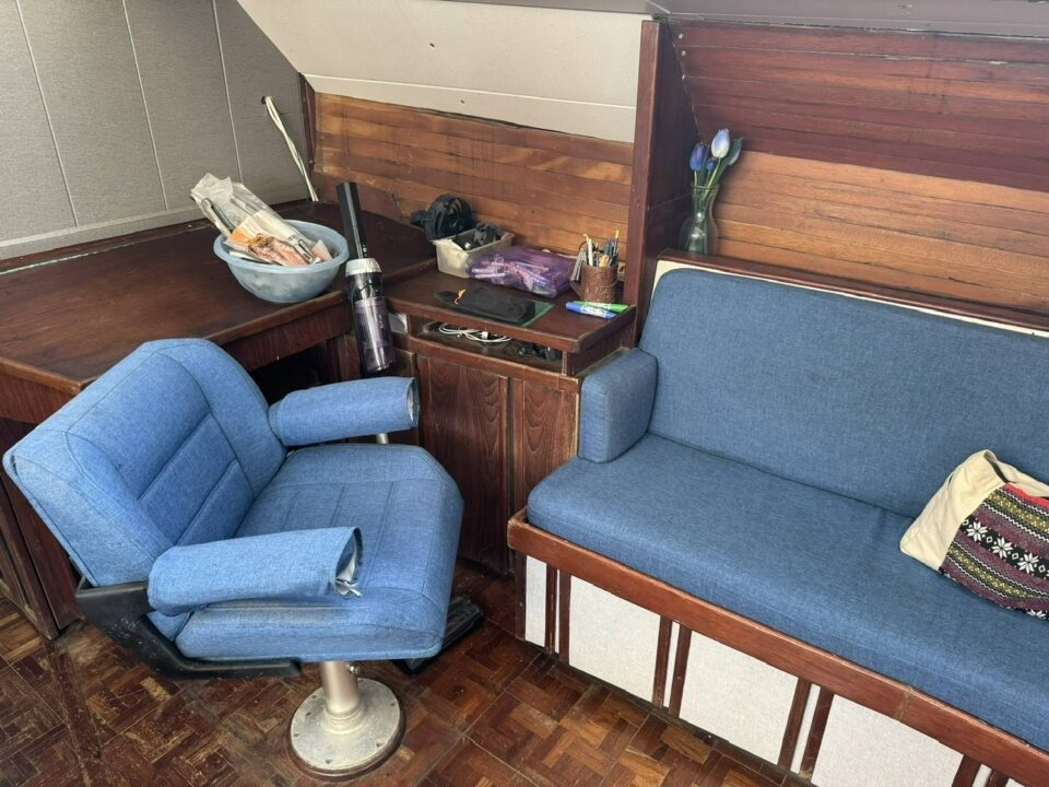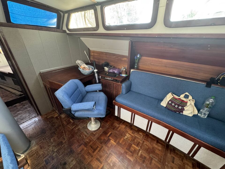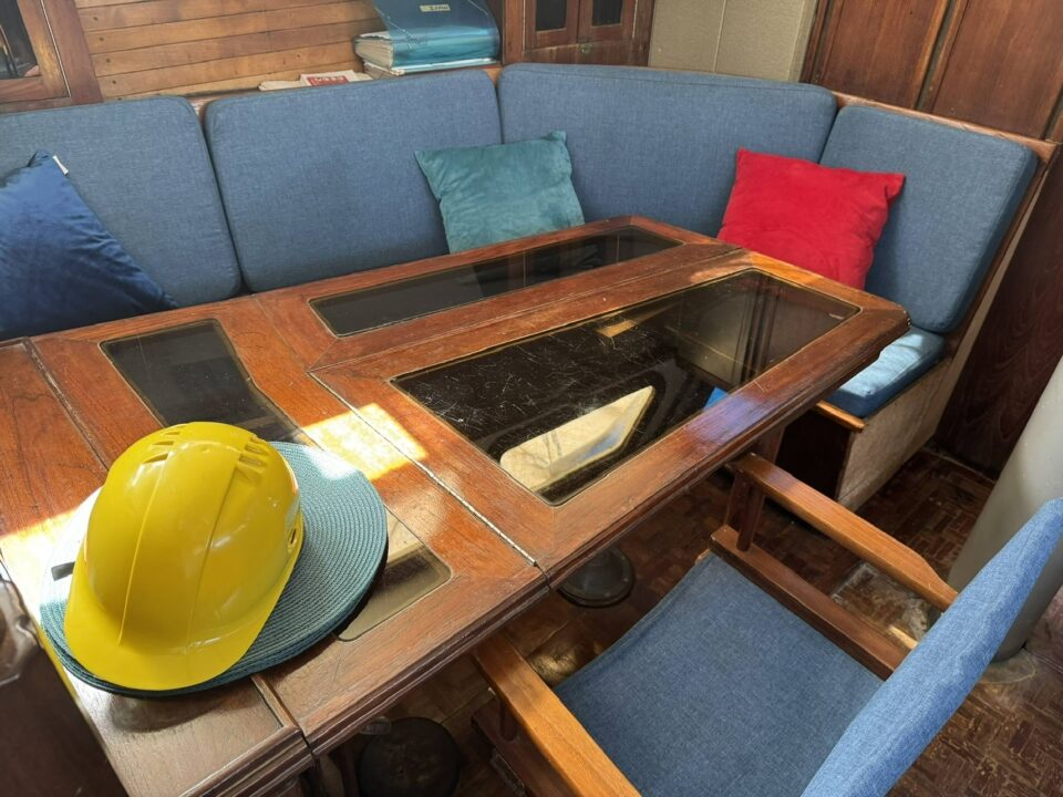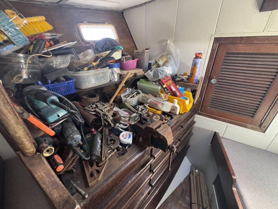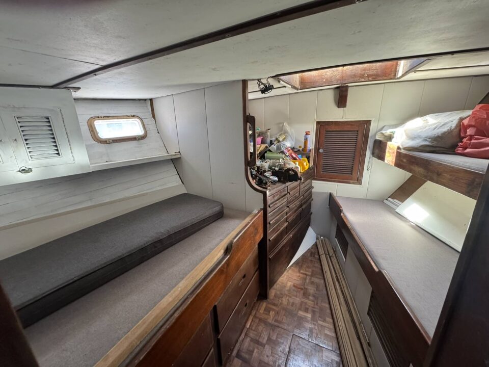 4 cabins, 2 bahtrooms, can sleep 8 persons, saloon, galley, workshop, lot of storage, spacious.