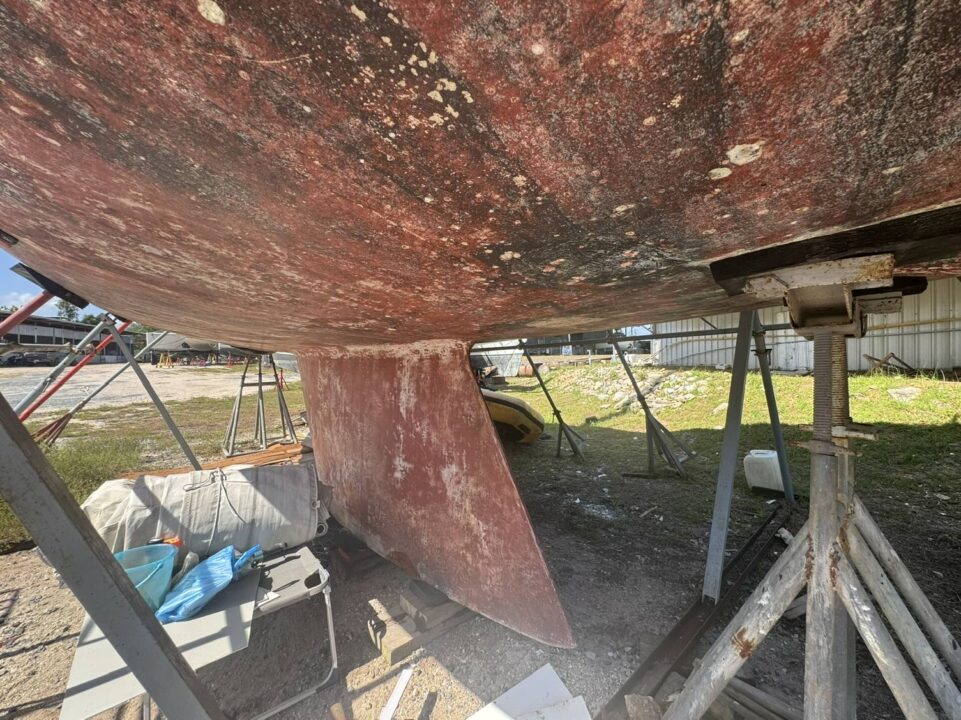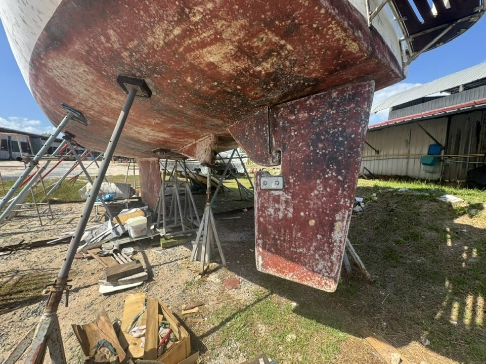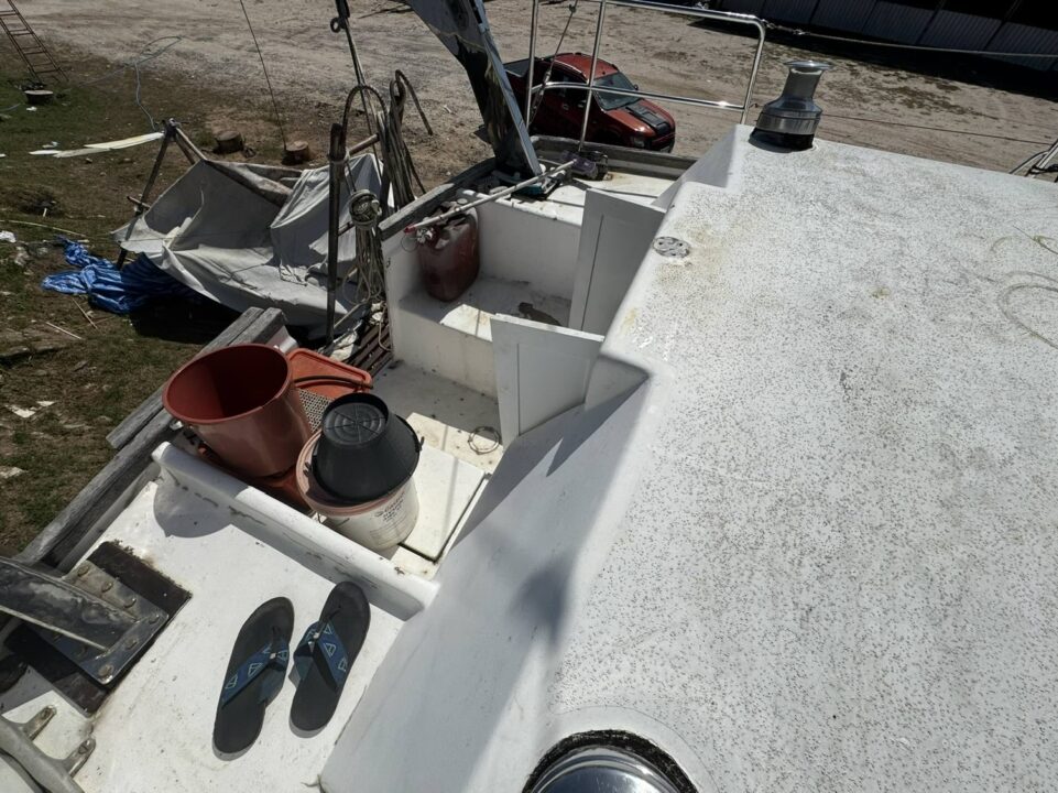 Powered by 1 inboard diesel engine PERKINS 120 hp, need to fix. ( actualy outside the boat for repair)