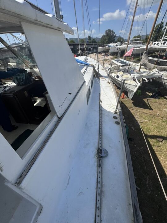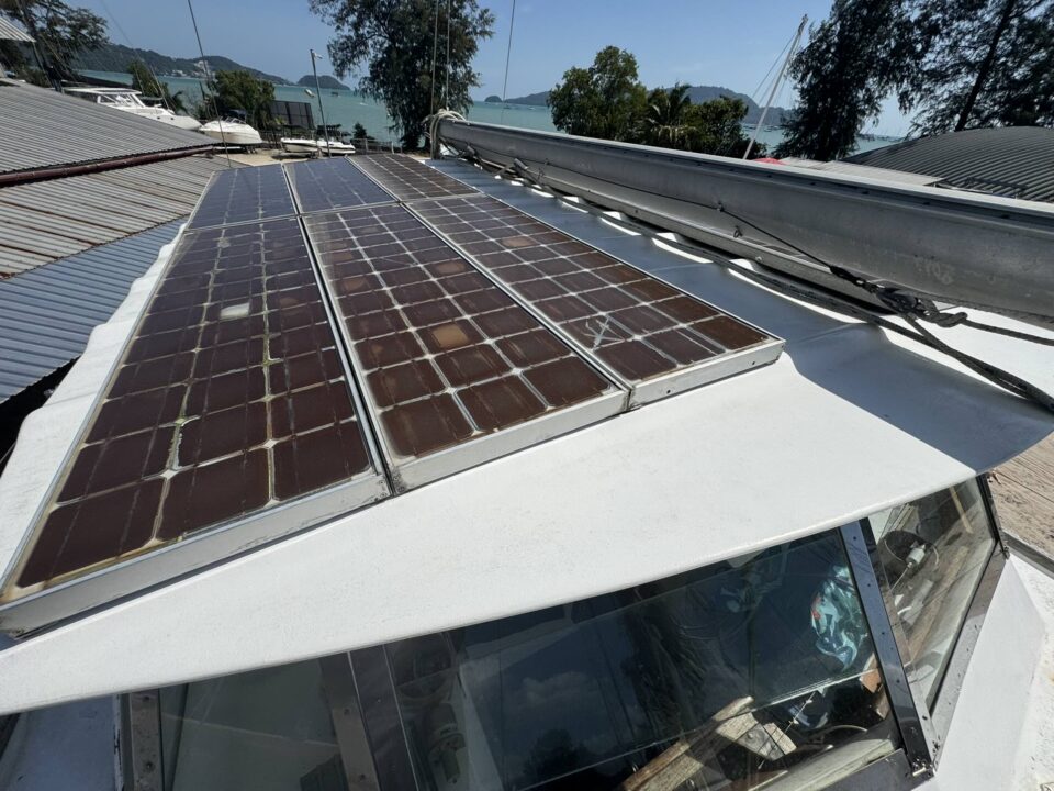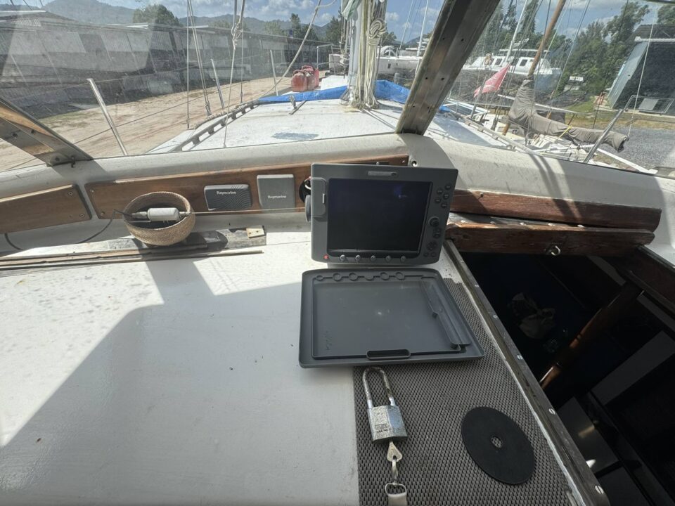 GPS, VHF, Autopilot, solar panel, inverter, shore power, fans, fridge, freezer, oven, davits and many extras.