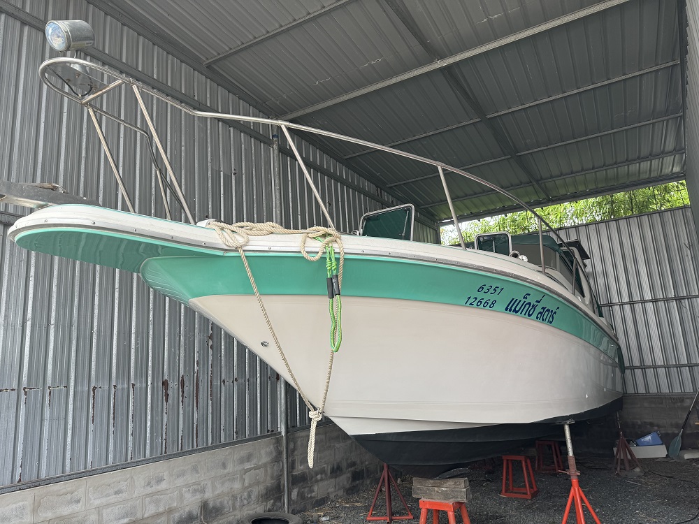 in good condition for its age, this boat SEARAY 290 SUNDANCER builtyear 1993, refit year 2020 and 2025, new engine with 202 hours use, is now for sale in PHUKET.