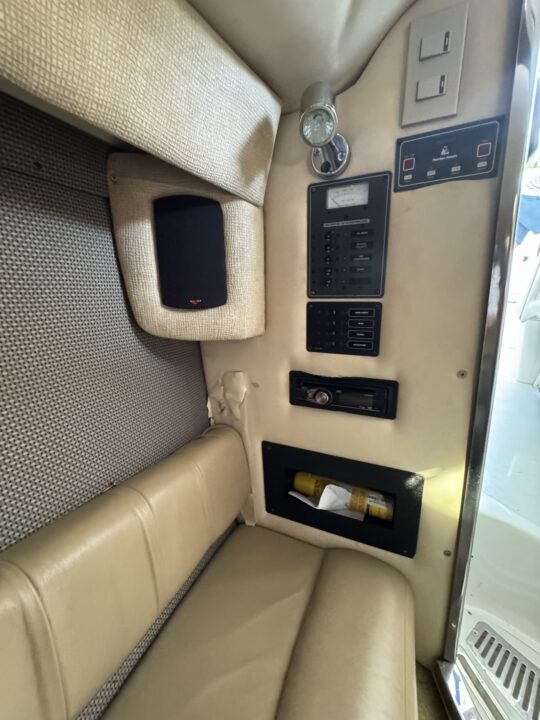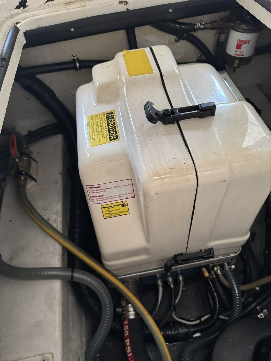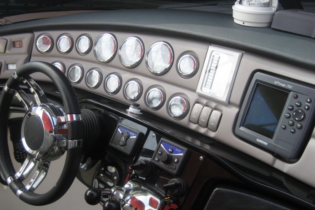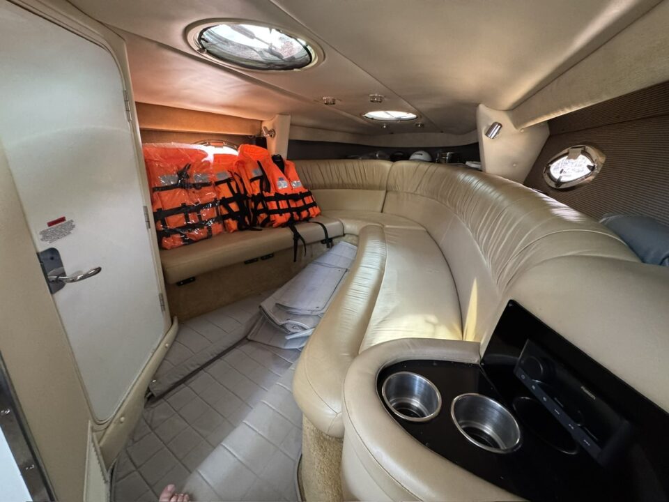 Well equipped and lot of options: GARMIN GPS, VHF, trim tabs, sound system, TV, air condition, toilet, shower,sunbed, bimini,comfortable seats and many extras.
