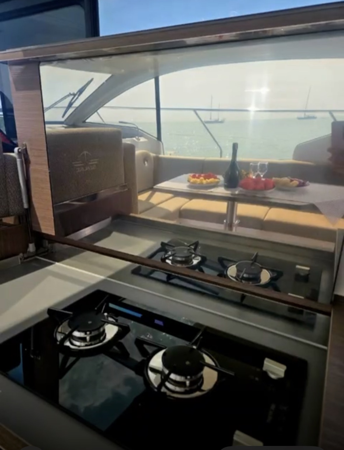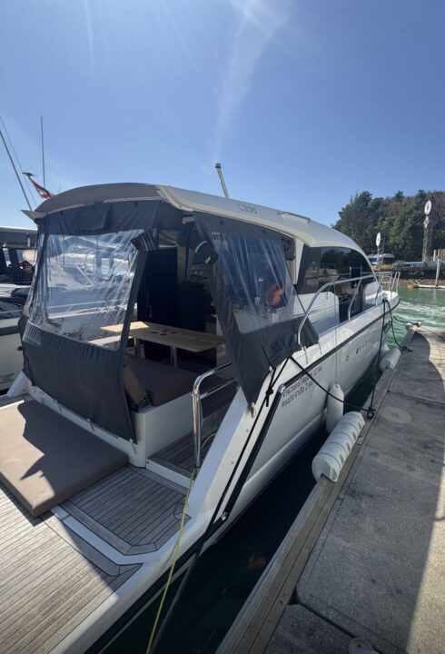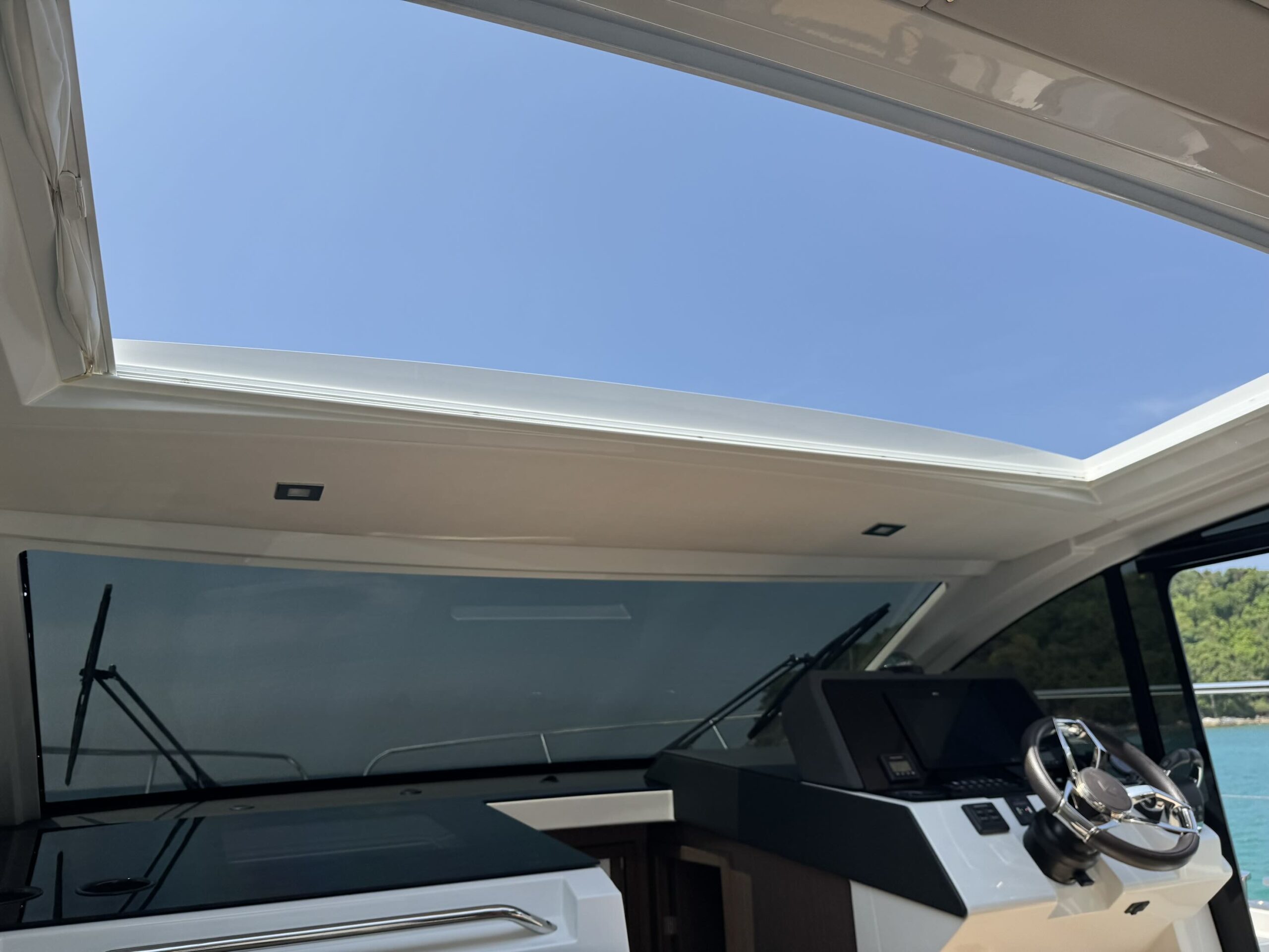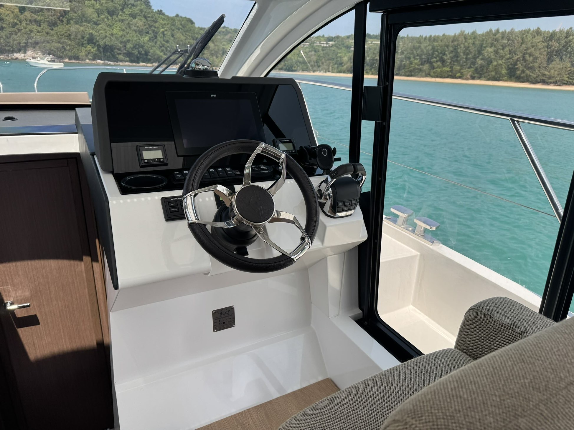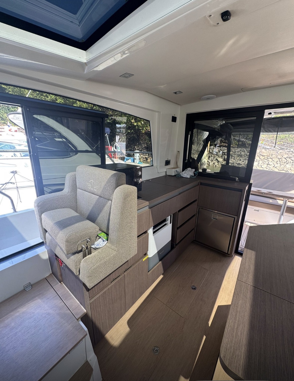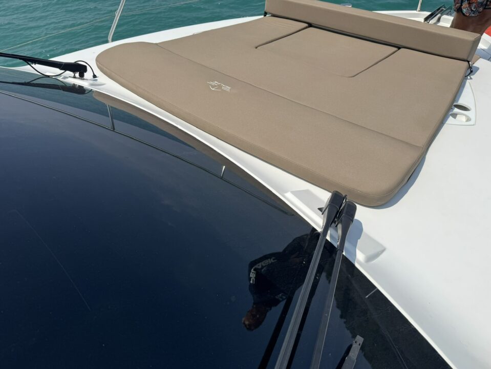 Well equipped: GPS/Sounder, VHF, AIS, Autopilot, electric winch, TV set, sound system, WIFI, 2 fridges, gas stove, microwave, sink, wet bar, sunbed, large platform, bimini, electric sun roof and many extras.