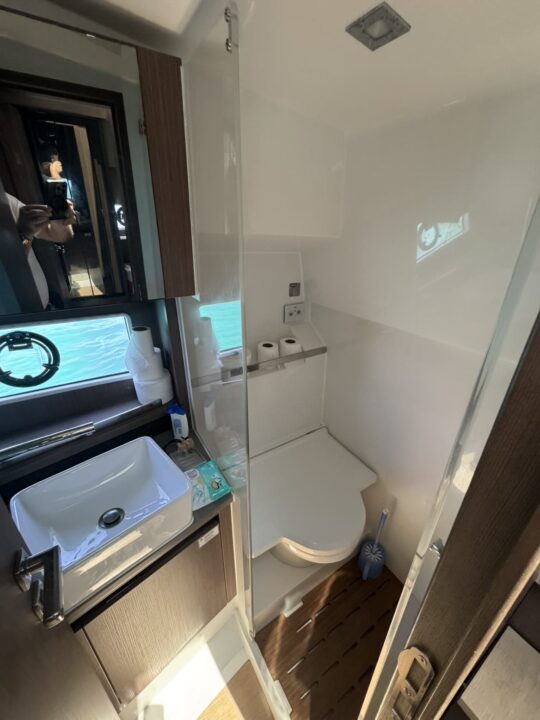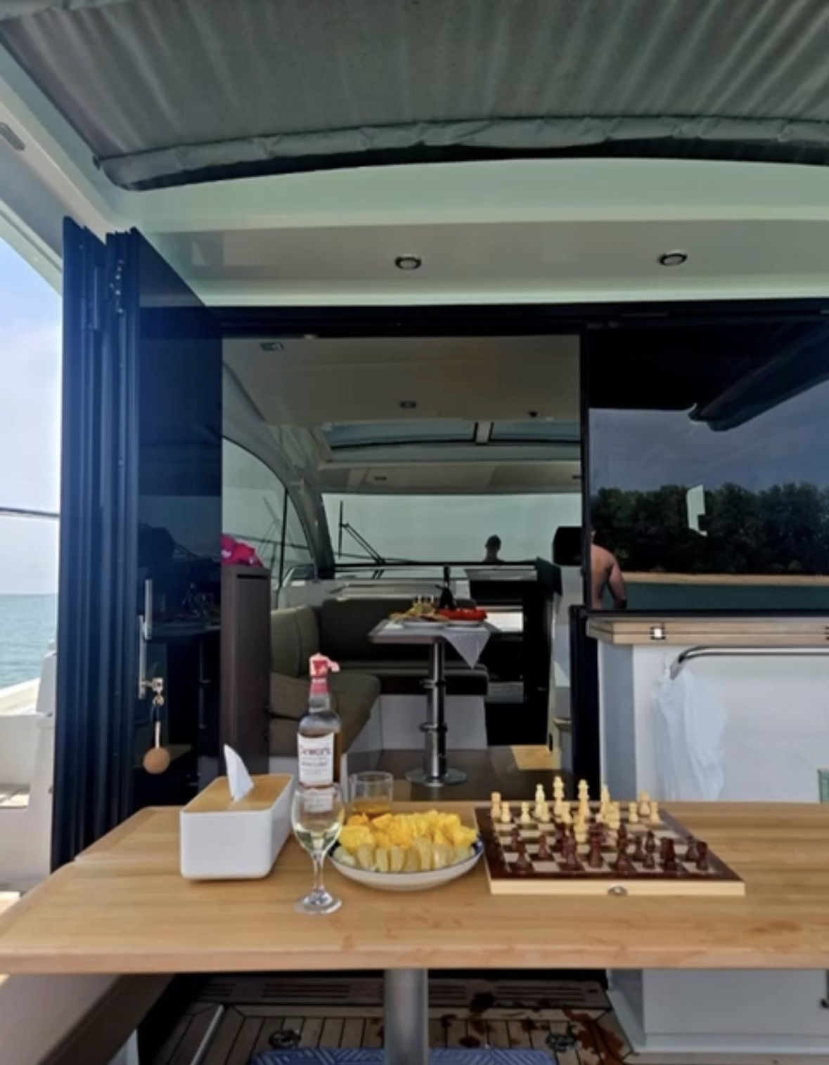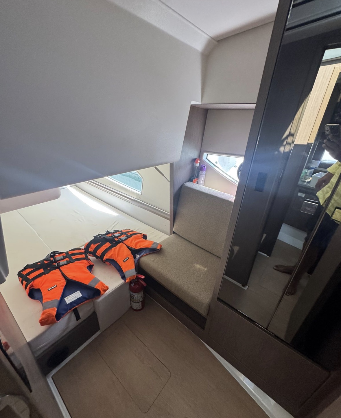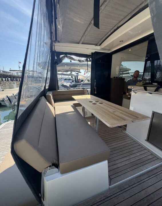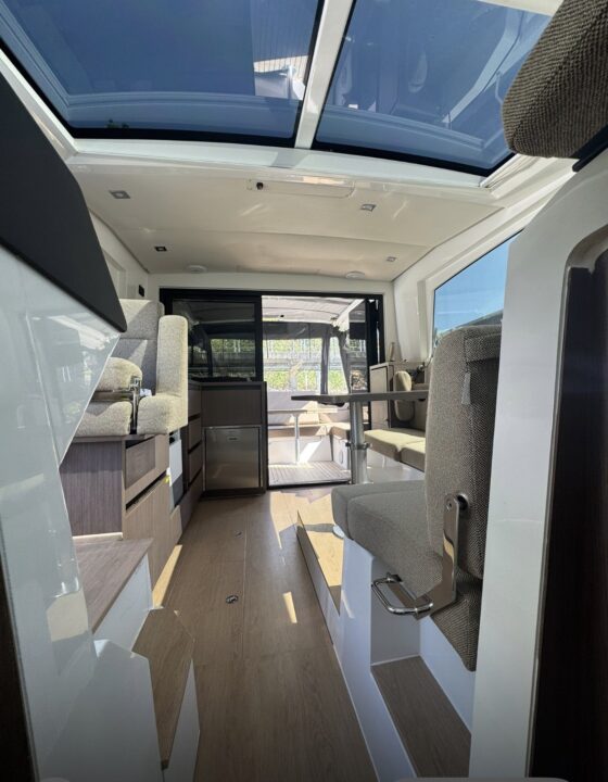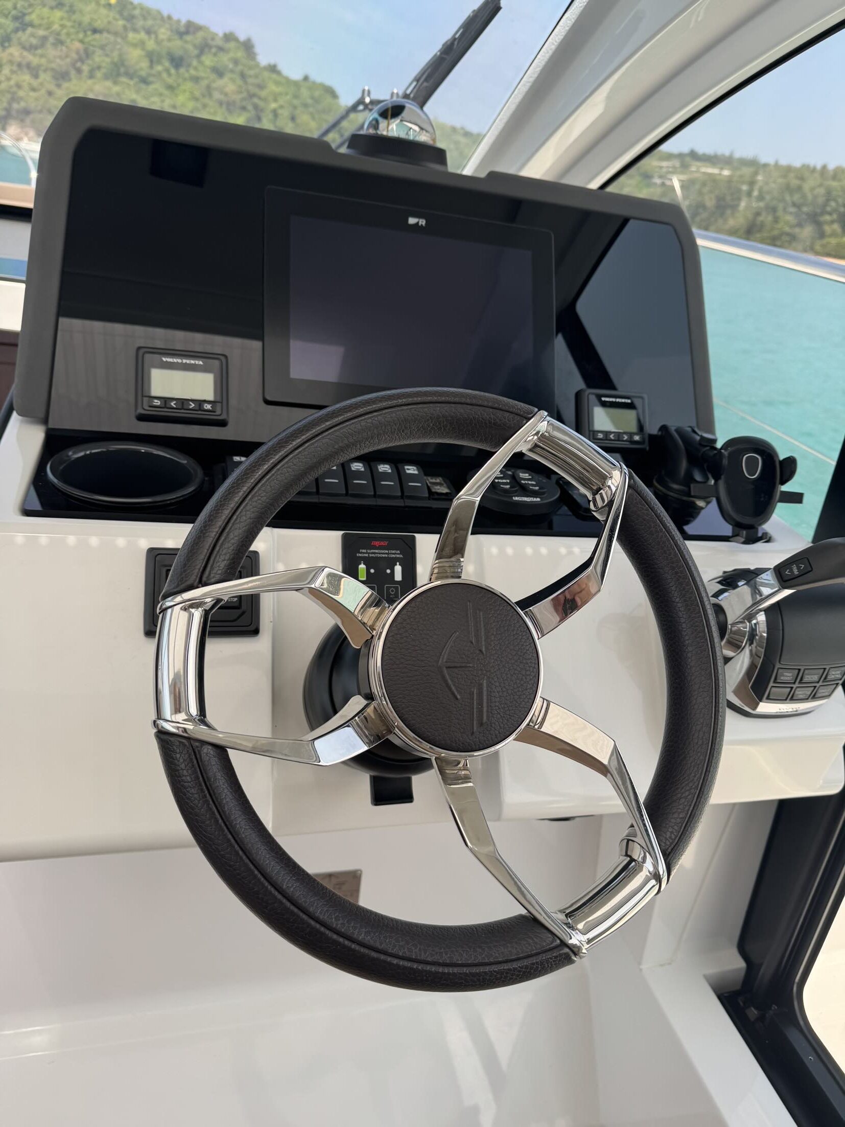 Well equipped: GPS/Sounder, VHF, AIS, Autopilot, electric winch, TV set, sound system, WIFI, 2 fridges, gas stove, microwave, sink, wet bar, sunbed, large platform, bimini, electric sun roof and many extras.