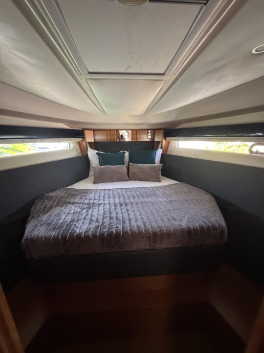 Well equipped: GARMIN GPS, VHF, AIS, joystick control for engines, volvo computer, 2 fridges, hot water, microwave, oven, 2 burners ceramic cooker, stereo music fusion, electric windlass, underwater lights and many extras.