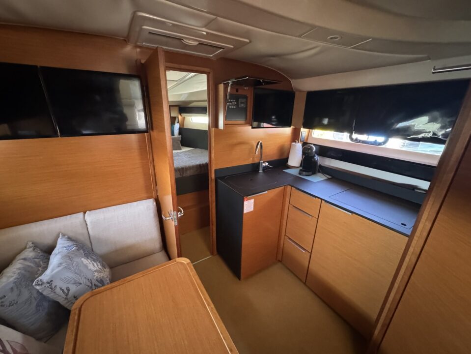 2 cabins, 1 bathroom, kitchen, saloon – full air condition inside.