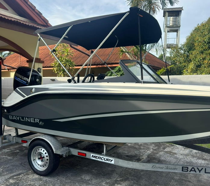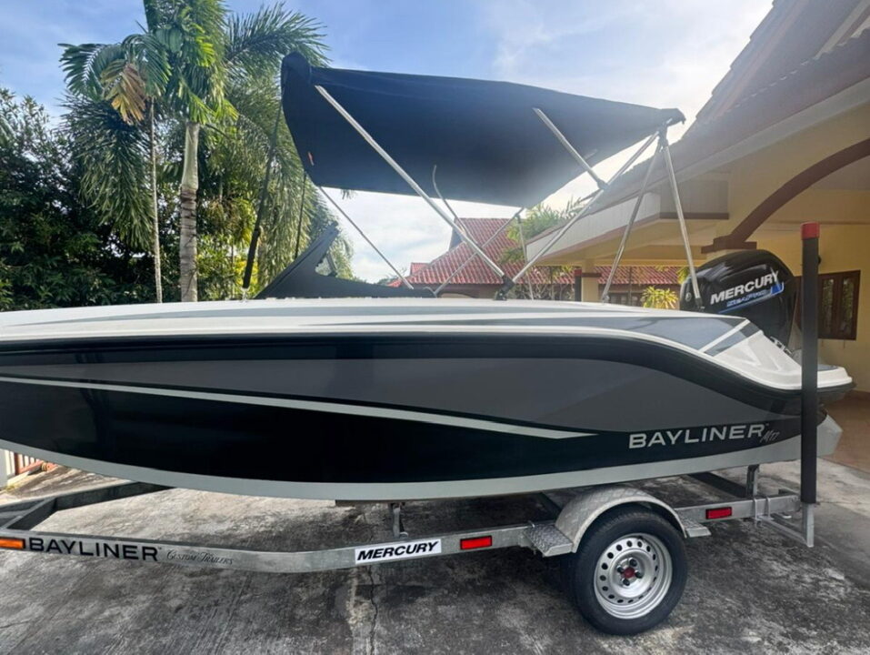 Like new condition, this fiber speed boat BAYLINER ELEMENT M17 ( 17 FEET) built year 2023 , use only 45 hours is now for sale in PHUKET.