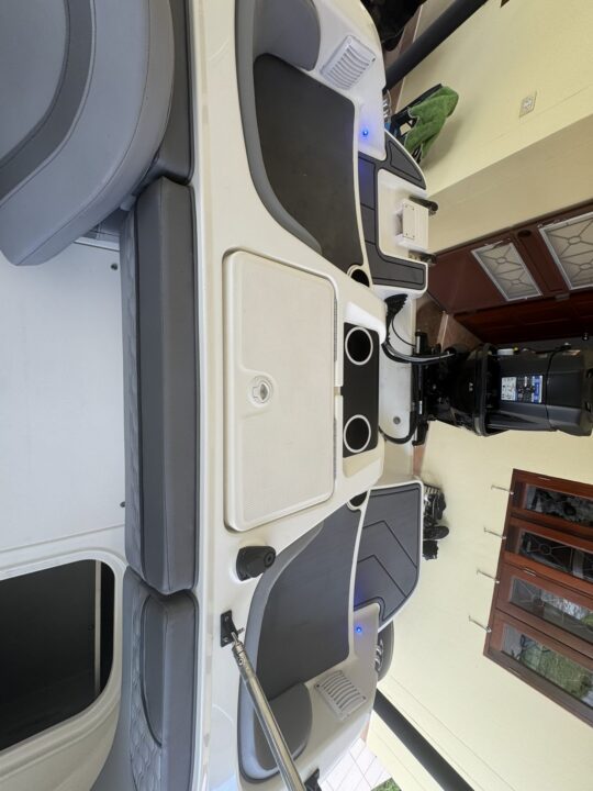 Well equipped: GPS, sound system, bimini, blue lights, anchor, ladder, many storage.