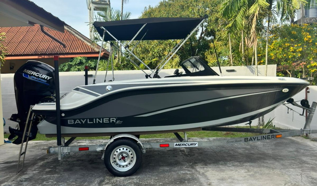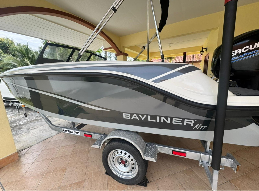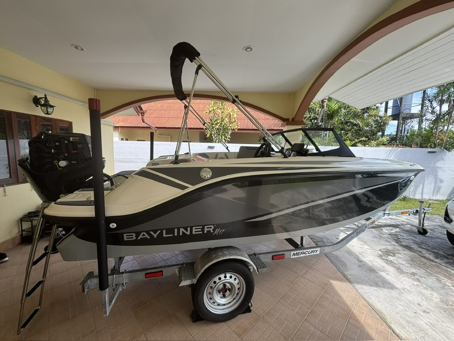 Like new condition, this fiber speed boat BAYLINER ELEMENT M17 ( 17 FEET) built year 2023 , use only 45 hours is now for sale in PHUKET.