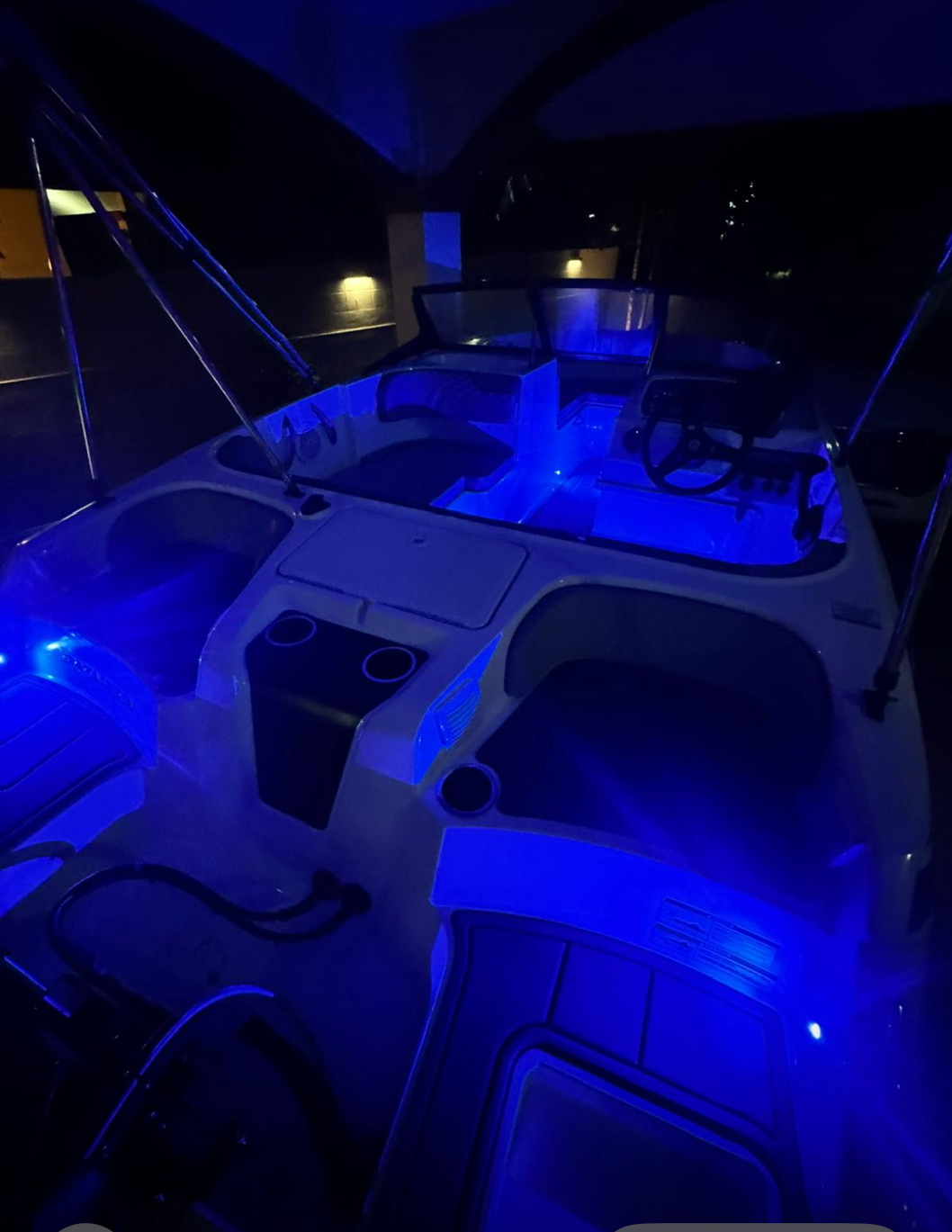 Well equipped: GPS, sound system, bimini, blue lights, anchor, ladder, many storage.