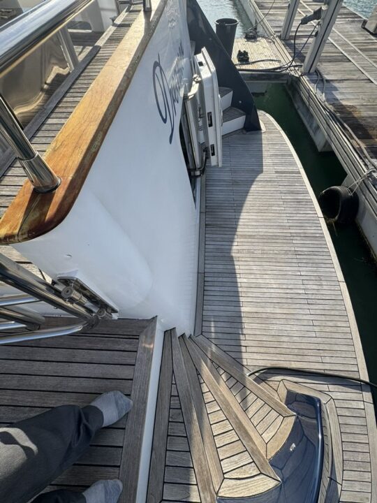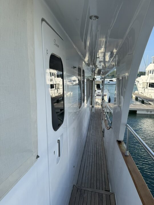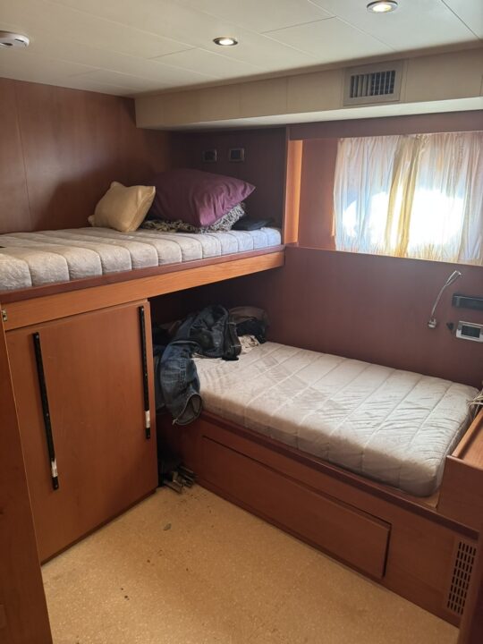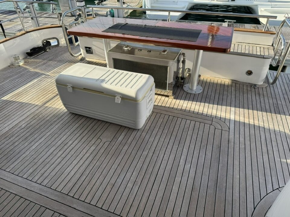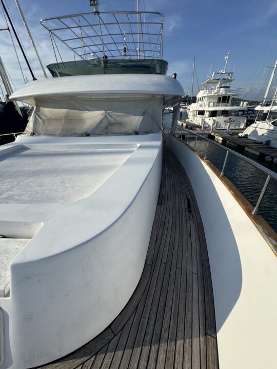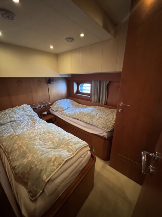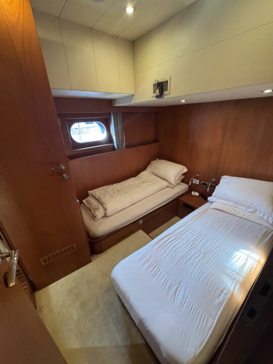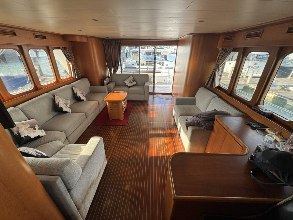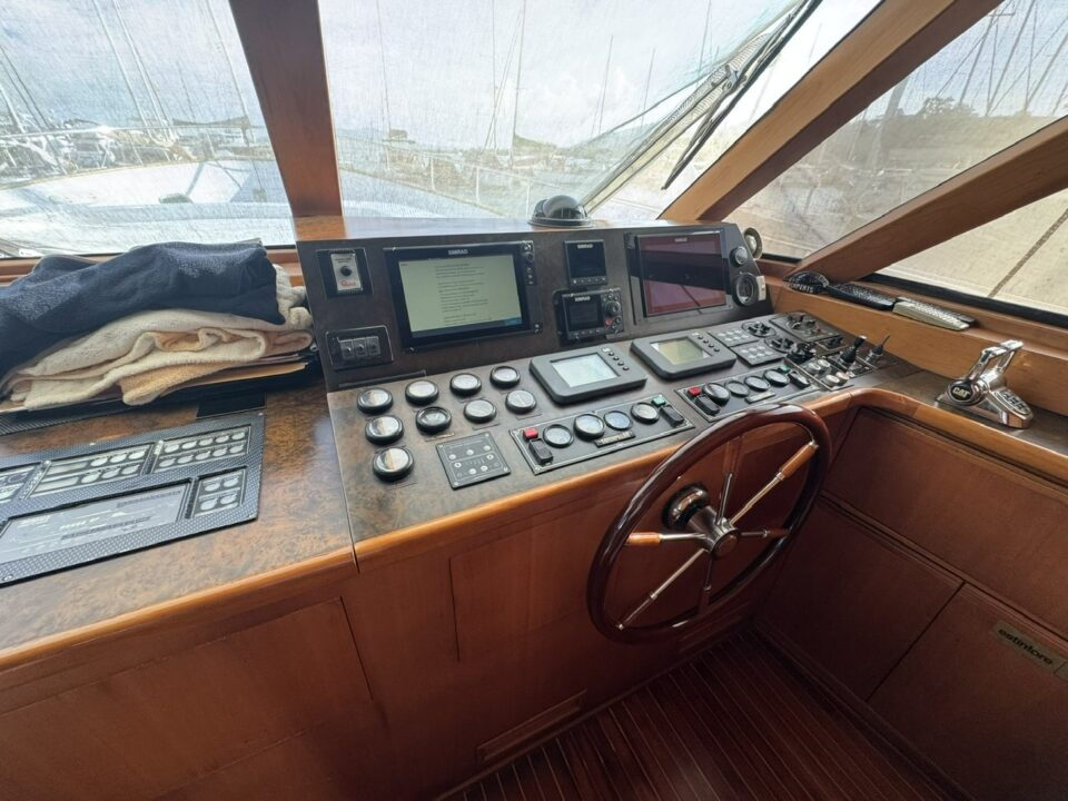 Length 23 meter, width 6.2 meter, high quality, 4 cabins, 4 bahthrooms, 2 crews cabins ( sleep 3) , spacious saloon, dinning area, kitchen, full air condition inside, large flybridge.