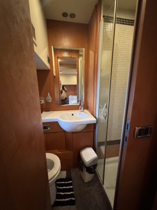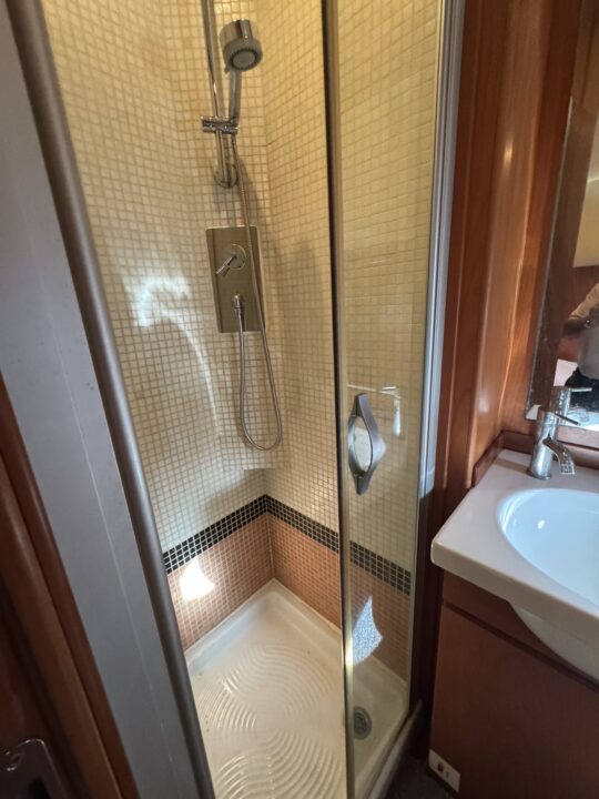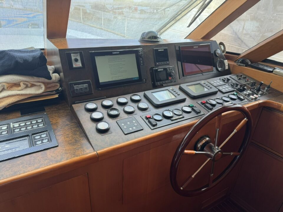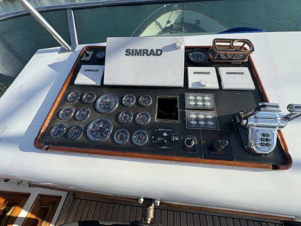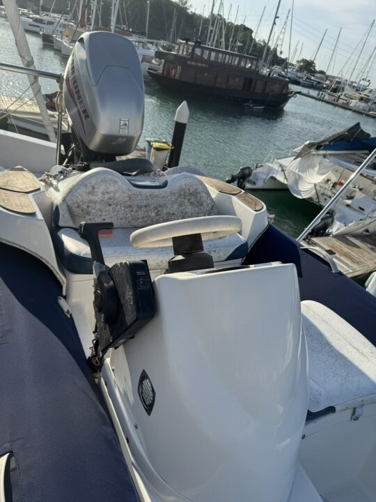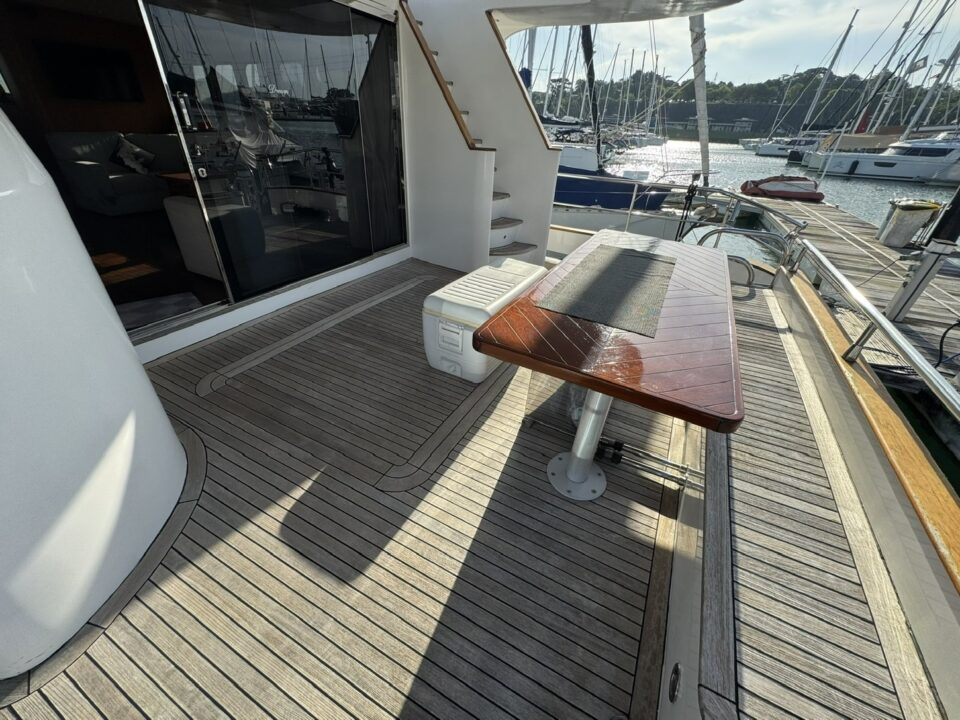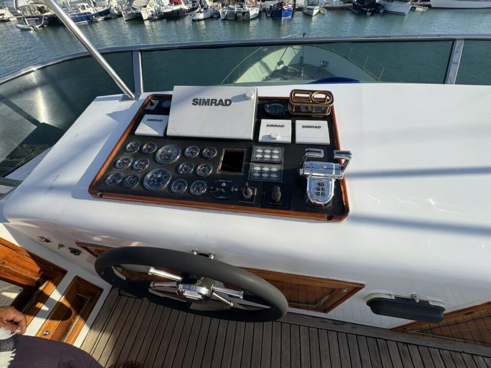 Well equipped: SIMRAD electronic instruments: Radar, GPS, AIS VHF, autopilot, bow thruster, Fridges, electric induction cooker, oven, microwave, washing machine, water maker, TV, sound system, bimini, sunbed, platform, crane, dinghy+ MARINER engine and many extras.