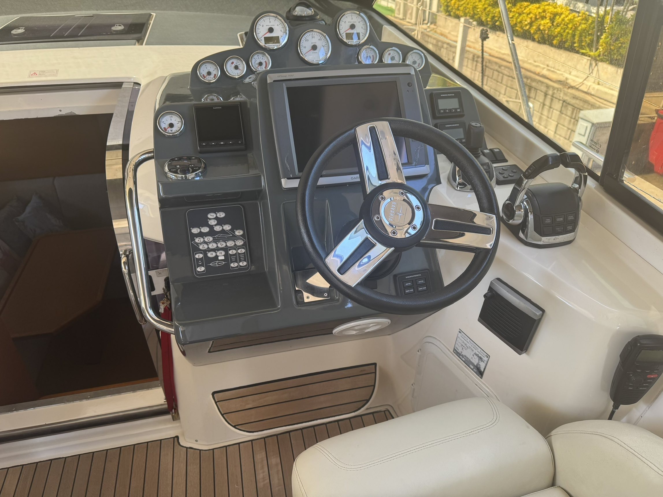Well equipped: GARMIN GPS, VHF, AIS, joystick control for engines, volvo computer, 2 fridges, hot water, microwave, oven, 2 burners ceramic cooker, stereo music fusion, electric windlass, underwater lights and many extras.